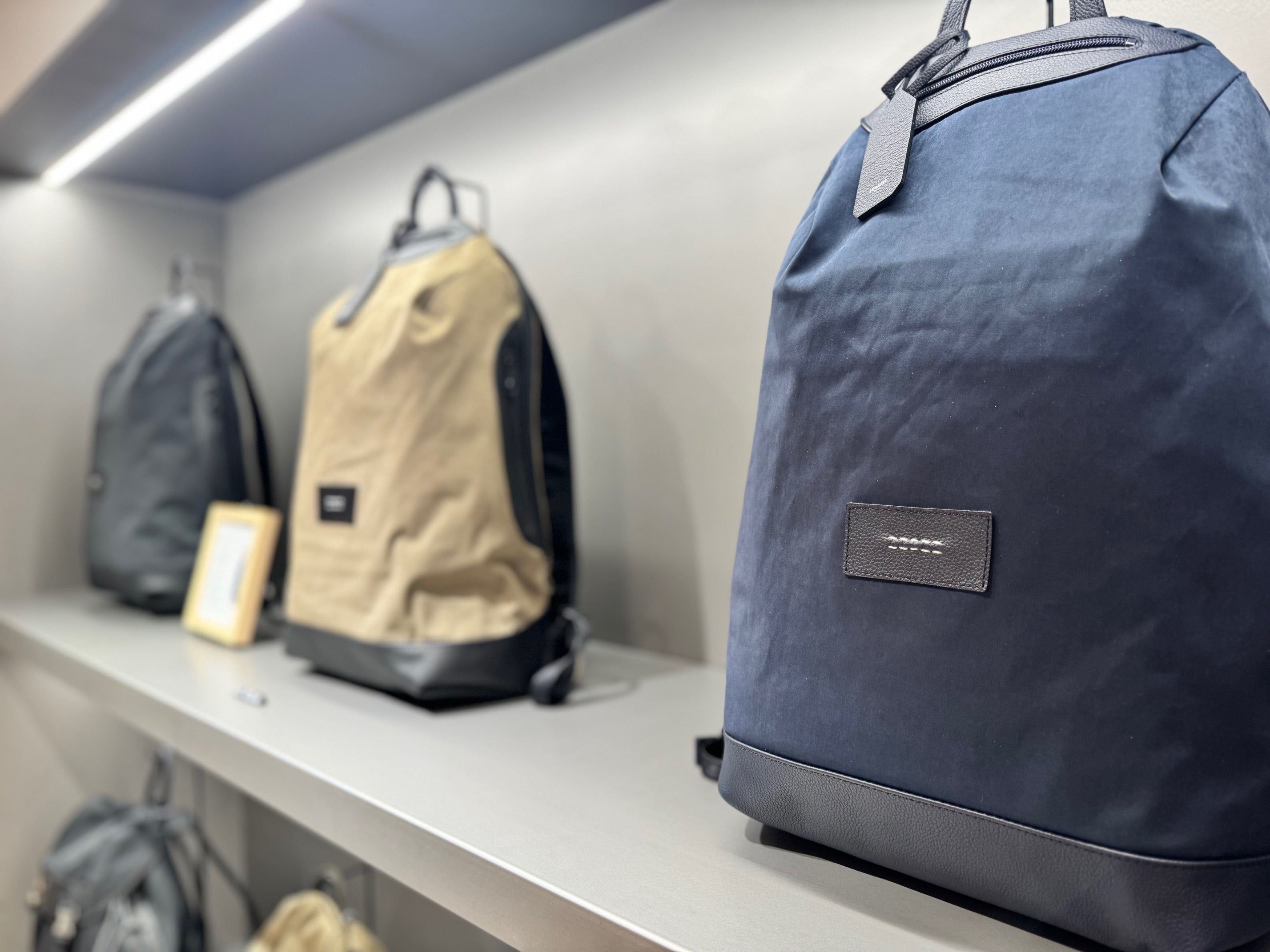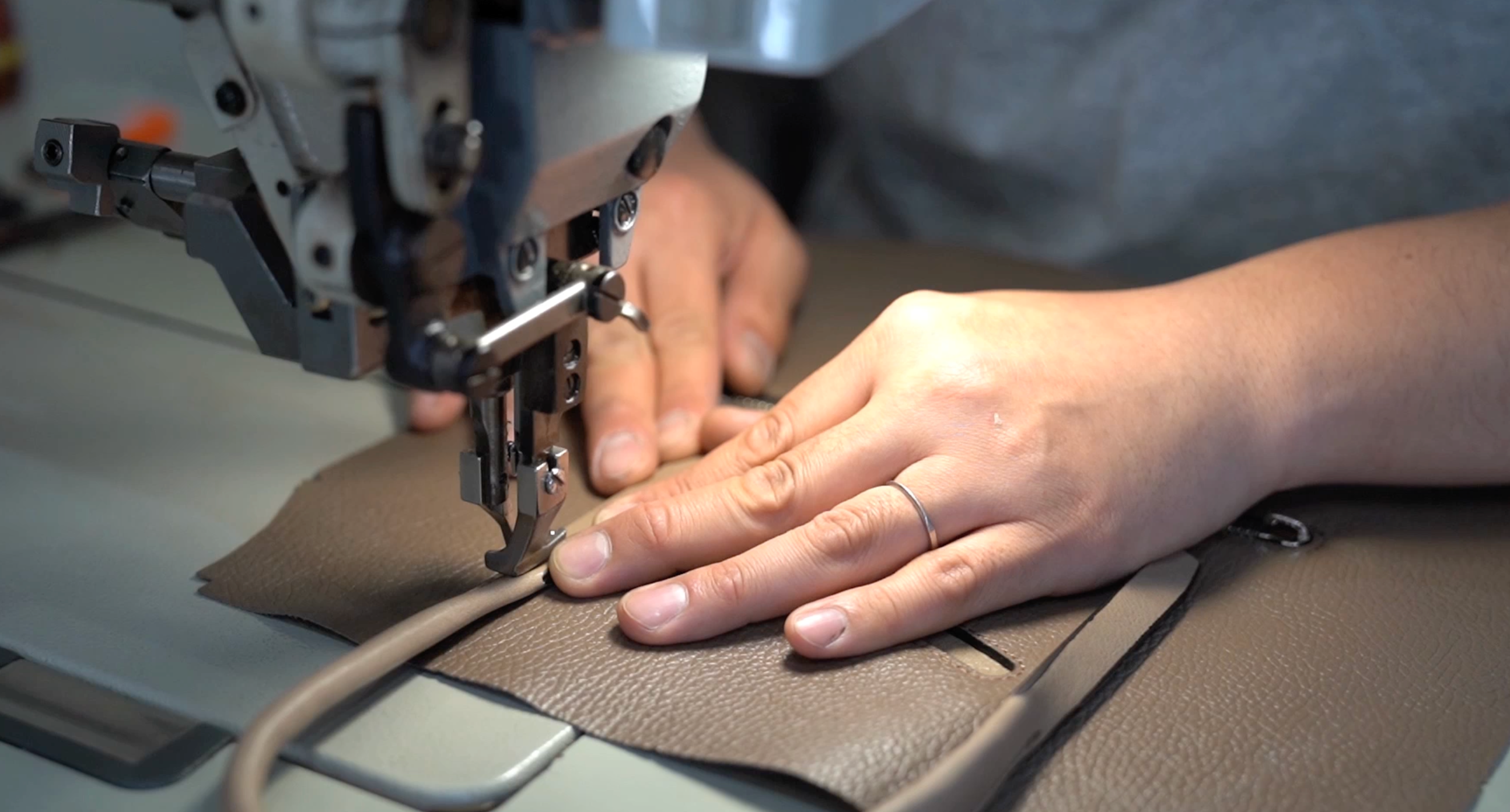 デッサンを描き、型紙を切り、縫製し、サンプルをつくる。それらをすべて職人が手で行います。一見、手を抜いても問題がないような部分にこそ、私たちは人一倍手間をかけます。切りっぱなしのコバは断面を整えてから丁寧に磨き、何度も色を塗り込み、さらに磨きをかけます。バッグに立体感を出すため手縫いでステッチをかけ、ブランドマークの縫いつけも手縫いにこだわります。大量生産は叶いませんが、妥協のない細部へのこだわりの積み重ねが、“HMAENらしさ”