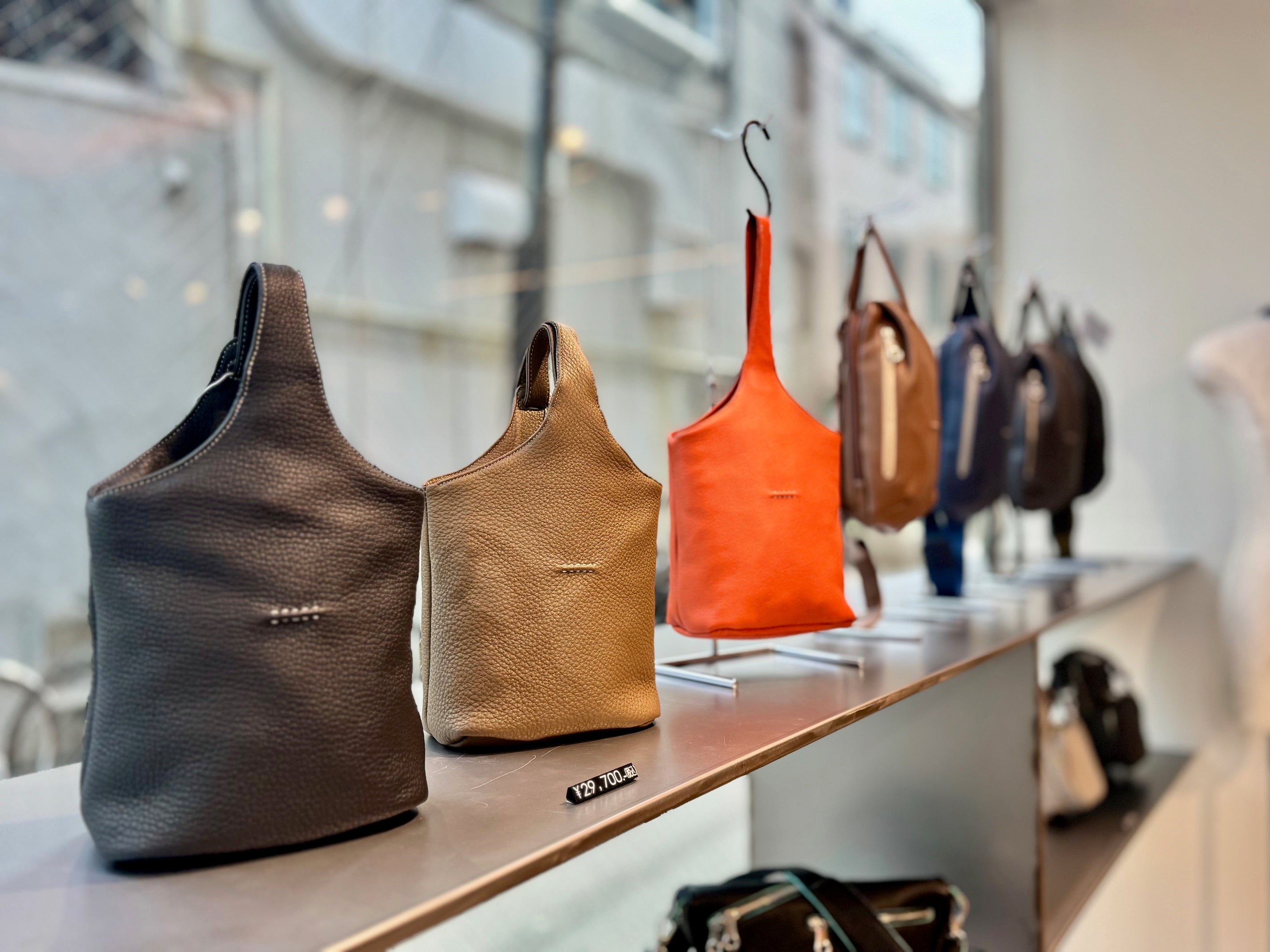 デッサンを描き、型紙を切り、縫製し、サンプルをつくる。それらをすべて職人が手で行います。一見、手を抜いても問題がないような部分にこそ、私たちは人一倍手間をかけます。切りっぱなしのコバは断面を整えてから丁寧に磨き、何度も色を塗り込み、さらに磨きをかけます。バッグに立体感を出すため手縫いでステッチをかけ、ブランドマークの縫いつけも手縫いにこだわります。大量生産は叶いませんが、妥協のない細部へのこだわりの積み重ねが、“HMAENらしさ”